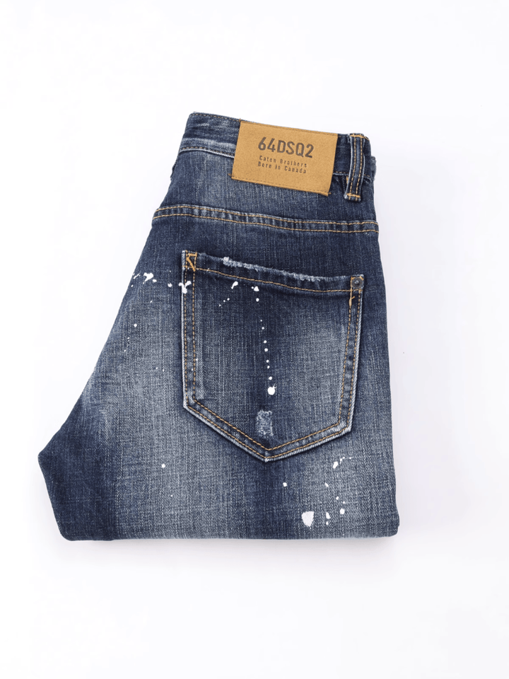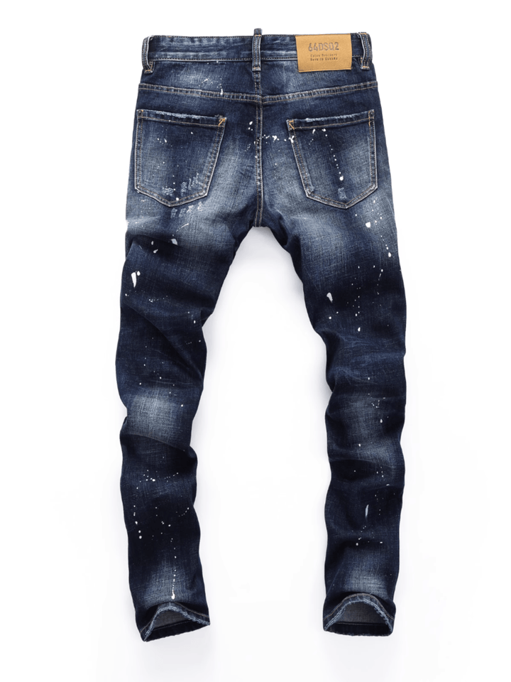 Washed Dark Denim Ripped Jeans